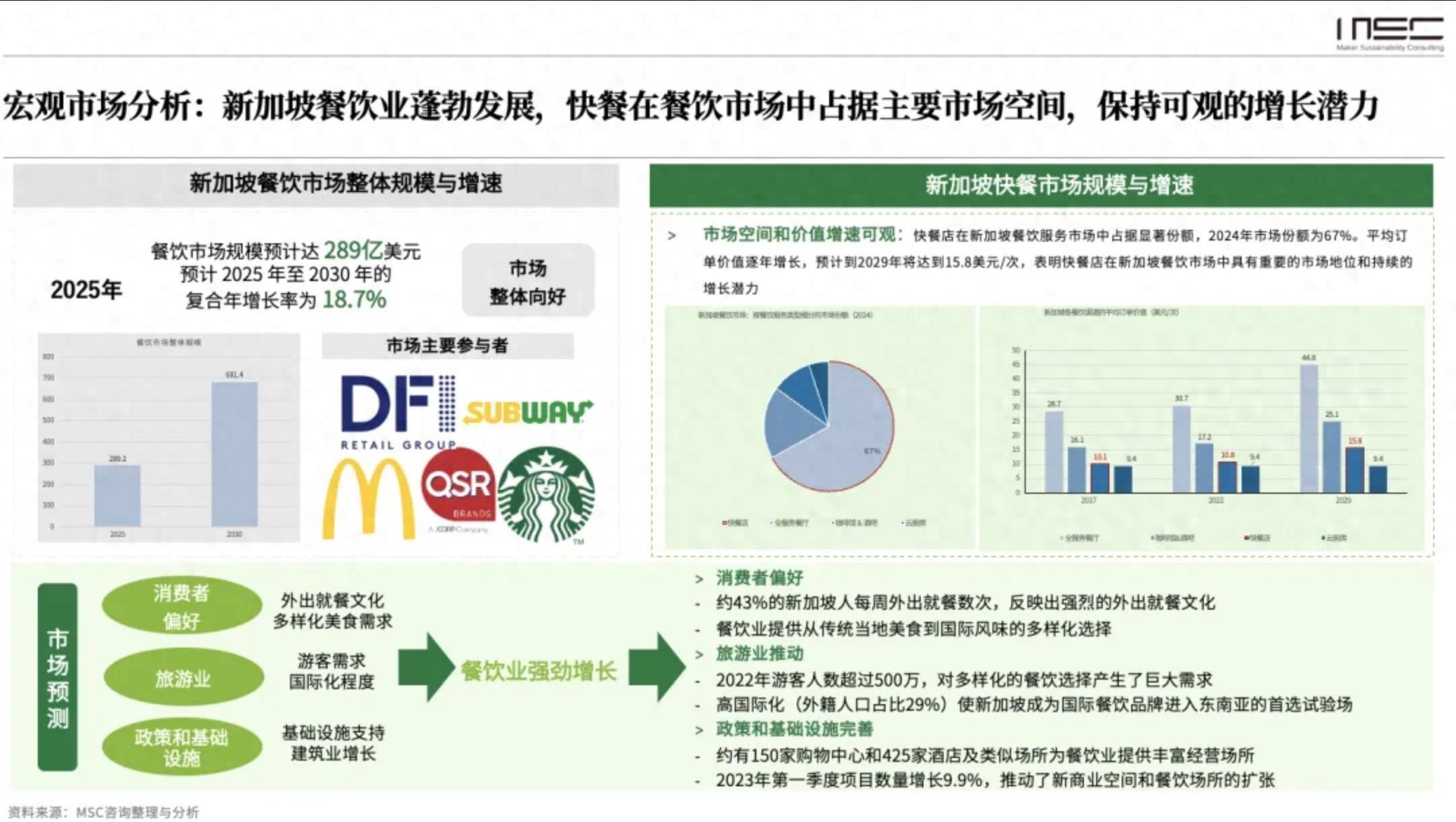 从海底捞、眉州东坡到乐乐茶、蜜雪冰城,中式餐饮品牌正正在快速渗入新加坡、马来西亚、印尼等市场。相较欧美市场的高成本取高门槛,东南亚凭仗地缘亲近、文化相通和生齿布局劣势,正成为出海的「确定性机遇」。此中,新加坡尤为环节:它不只经济发财、轨制成熟、国际化程度高,仍是整个区域的试验场取放大器。按照预测,新加坡餐饮市场规模将正在 2025 年达到 289。2 亿美元,2030 年更将跨越 681 亿美元,增速显著。